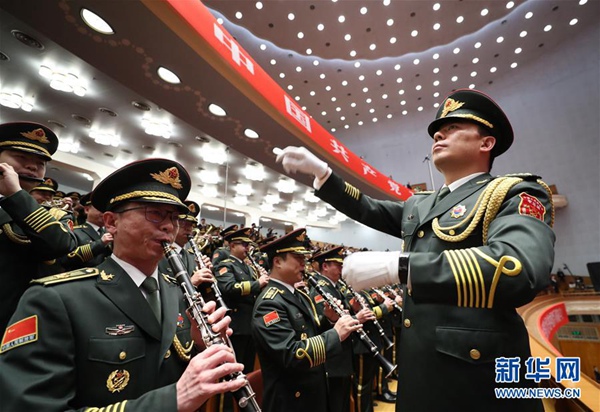 10月24日,中國共產黨第十九次全國代表大會閉幕會在北京人民大會堂舉行。這是軍樂團奏《國際歌》。 新華社記者 王曄 攝